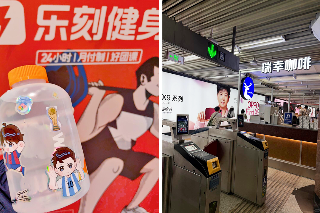 03. 2026年的咖啡竞争白热化 实际上,如今的咖啡赛道的竞争,已经不局限于店中店了。渠道的形态正不断被打破与重组,渗透入消费者的每一处日常。 今年10月底,瑞幸在北京地铁1号线国贸站的出站闸机旁开出门店,乘客进站前或赶路途中通过手机下单,到店即取,精准拿捏“打工人”的碎片时间。 不止于此,根据网友们的反馈,在报刊亭、保安室、电梯间、公园售票处等多个点位,都曾看到过瑞幸的身影。